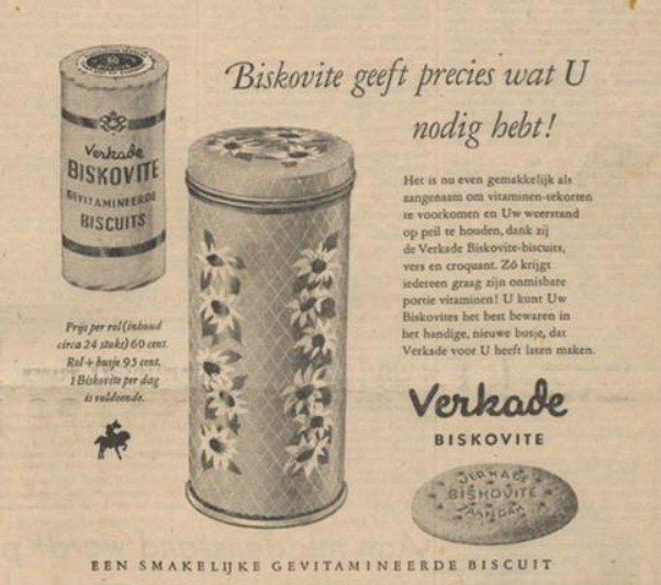 bewaarblik van Verkade voor een rol 'gevitamineerde biscuit'