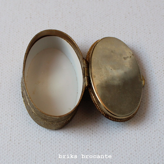 ovaal metalen, goudkleurig (messing?) pillendoosje